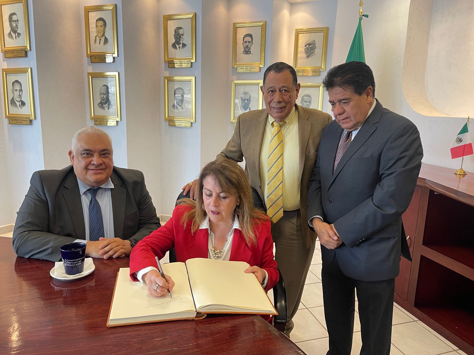En tanto que la lic. Margarita González Saravia Directora General de Lotería Nacional, dijo sentirse muy orgullosa de estar presente en esta ceremonia, la cual catalogó como única dada la importancia de los 20 personajes cuya fotografía y nombre aparecen en los billetes de lotería y ratificó su compromiso para seguir trabajando de la mano con la FEMECRODE.